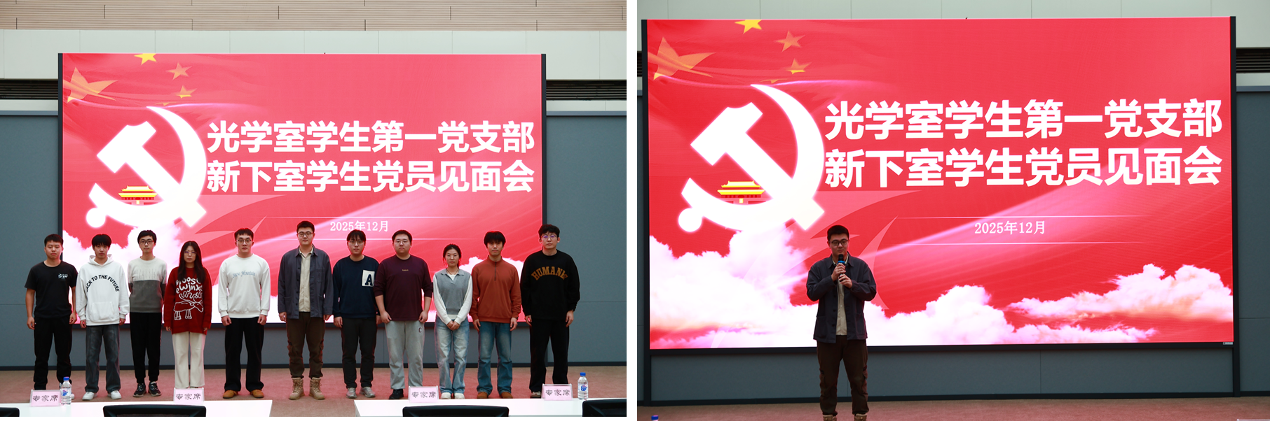 为严格落实 “三会一课” 制度,扎实推进党支部标准化规范化建设,全面总结 2025 年度党建工作成效,深入学习党的创新理论与科技创新重要精神,2025年12月19日下午,长春光机所光学室学生第一党支部在光学楼阳光报告厅召开党员大会。支部全体党员、入党积极分子参会,党支部书记刘斌主持会议。 会议在庄重严肃的氛围中拉开帷幕。首先举行新下室学生党员见面会环节,分享个人科研方向、入党初心及对支部生活的期待。老党员代表结合自身科研与支部工作经历,从理论学习、组织生活参与、科研协作等方面分享经验心得,表达了对新党员的欢迎与期许。现场互动热烈、氛围融洽,有效帮助新党员快速融入支部集体,进一步夯实了支部 “传帮带” 的优良传统,为支部注入新鲜活力。