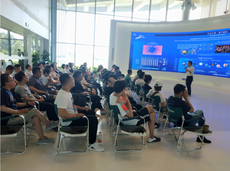 深圳国家基因库依托深圳华大生命科学研究院(原深圳华大基因研究院)而组建,是我国首个获批筹建的国家级综合性基因库。在国家基因库,讲解员细致耐心的讲解了基因及基因测序的发展历程、华大在基因测序方面的研究进展以及应用领域等情况。全体员工还参观了由长光华大研发出来的基因测序仪在国家基因库工作的场景。