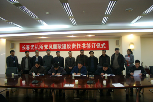 为深入贯彻落实党的十七大精神和党中央国务院《关于实行党风廉政建设责任制的规定》,根据院党组的要求和长春分院的部署,12月30日上午,长春光机所举行“党风廉政建设责任书签订仪式”。长春光机所所长宣明,党委书记、副所长贾平,马明亚,管理支撑系统、研究系统、产业系统各部门负责人参加了责任书签订仪式。仪式由党委副书记、副所长、纪委书记马明亚主持。