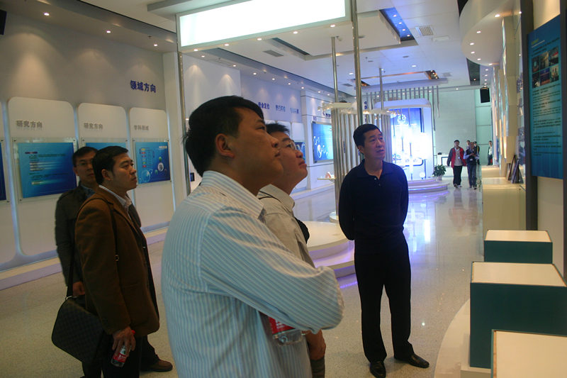 之后考察团抵达了苏州医工所。马明亚副所长结合展厅图片为考察团介绍了医工所的发展情况,之后由医工所邓强副所长为考察团详细介绍了三年来苏州医工所的发展情况,并与医工所的管理、科研部门的代表展开座谈,进行了热烈的研讨。