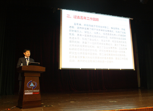 长春光机所所长宣明作2013年度工作报告。他在报告中回顾和总结了过去五年本所创新发展取得的成就和经验,系统分析了当前国际、国内、中科院的形势以及本所面临的问题,详细阐述了新一届所领导班子的任期目标,细致部署了2013年的主要工作。宣明指出未来五年本所发展的总目标是:建设一个以长春光机所为核心、以“研产学并举”为发展模式、以产权联结为主要纽带,设有若干个研发单元、企业、孵化器和研究生教育学院,具有完整创新价值链、集团式运作的国家重大科技创新基地。未来五年内实现新签科研合同额40亿元/年,五年内企业实现销售收入总额60亿元/年。宣明要求与会代表在会议期间认真审议两个报告,积极建言献策,为明晰长春光机所未来五年发展做好谋划、夯实基础。