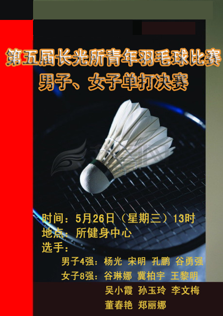 长春光机所第五届青年羽毛球比赛男、女单打比赛通知
