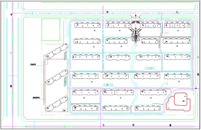 我单位职工在高新北区所购住宅小区名称为科苑小区,位于规划中A、B地块。具体位置如图1所示,A区北侧为学校,B区北侧为回迁住宅。AB地块南侧也为住宅,部分建设已经开始。其中A区共建设住宅27栋,B区建设住宅22栋,具体住宅及户型情况见图2、图3。(注:图2、图3中户型A、B、C、D分别代表面积约69、87、103-125、130平方米的户型)。