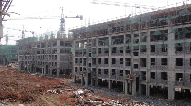 目前绝大栋号完成封顶,正在进行砌筑施工。剩余栋号预计6月26日全部完成封顶,然后开始墙体砌筑施工。按照认购书要求,六月底即将进行第二次交款。预计七月初,建筑主体的施工将初步完成,下一步将进行室内装饰、布线及外网道路的施工。