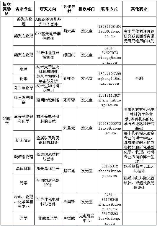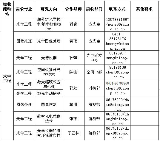 通信地址:吉林省长春市东南湖大路3888号中科院长春光机所人事处