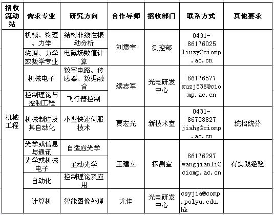 联系部门:中国科学院长春光学精密机械与物理研究所人事处