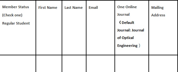 为鼓励我所科研人员积极参与国际学术交流活动,提升我所国际影响力,现进行2015年度SPIE会员招募。请预申请人员按下表填写报名信息,在pdf附件中选择相应杂志(默认选择为光学工程杂志),邮寄地址描述详细准确。填好后发邮件至国际合作处,报名截止日期6月20日。