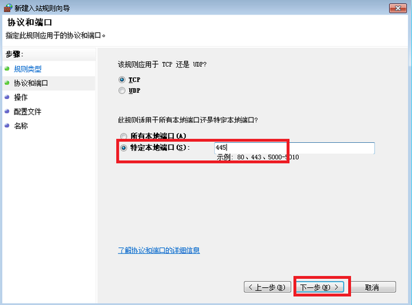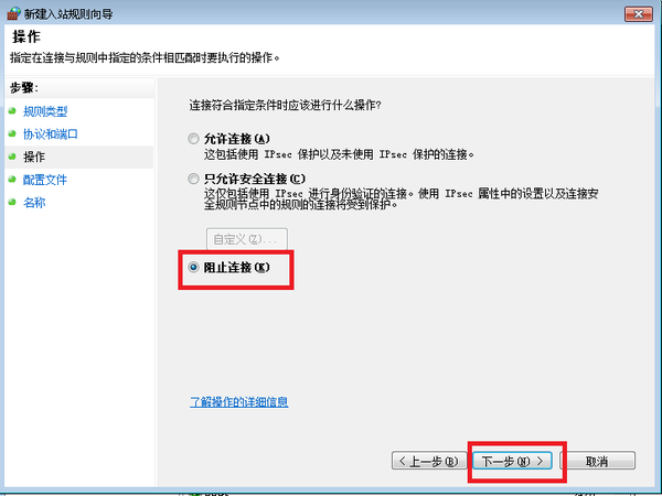 (2)启用系统防火墙,利用系统防火墙高级设置阻止向135/137/138/139/445端口进行连接(该操作会影响使用这些端口的服务)。
