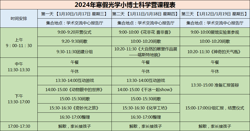 为服务全所职工,丰富职工子女假期精神文化生活,党委办公室将组织科普志愿者协会开展2024年寒假“光学小博士科学营”(共两期),现将活动有关事宜通知如下: