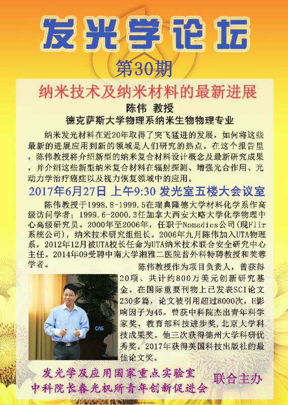第30期发光学论坛-纳米技术及纳米材料的最新进展