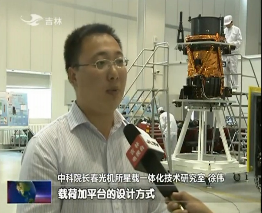 【同期声】吉林电视台记者 刘铠(这里是长春光机所星载一体化卫星的总装大厅,我身旁的科研人员正在组装的就是东北地区首个商用遥感卫星——吉林一号,这个由我们吉林省自主研发的小卫星具有质量轻,体积小,分辨率高等特点,在距离地球表面五六百公里高的轨道高度上,可以清晰的分辨出地面上正在行驶的汽车。)