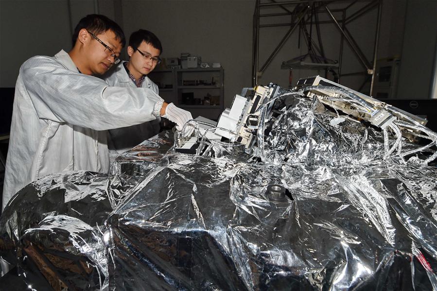 12月1日,科研人员在中科院长春光学精密机械与物理研究所高光谱实验室对“碳卫星”高光谱探测仪进行上电前状态检查。 新华社记者张楠摄