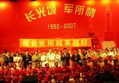 五十五年风雨砥砺,半个多世纪成果辉煌。在喜迎共和国58华诞和党的十七大即将胜利召开之际,长春光机所也迎来了她55岁的生日。9月28日,长春光机所隆重举行了“长光颂 军所情”----庆祝长春光机所建所55周年军所文艺汇演。出席本次文艺汇演的领导和来宾有:中国人民解放军海军91550部队副政委杜广勤、装备部副部长阎霄鹏,中国人民解放军总装备部沈阳军事代表局驻长春地区军事代表室副总代表赵贵军,以及中国人民解放军海军驻长春地区航空军事代表室、中国人民解放军驻133厂军事代表室、吉林省直党工委、中科院长春分院、长春应化所、东北地理所、国家天文台长春人卫站等单位领导,还有在所访问的中国科学院院士、华南师范大学原校长刘颂豪先生与夫人,以及陈星旦院士、王家骐院士。