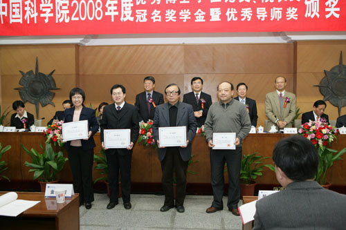 博士(左一)荣获2008年度中国科学院院长特别奖