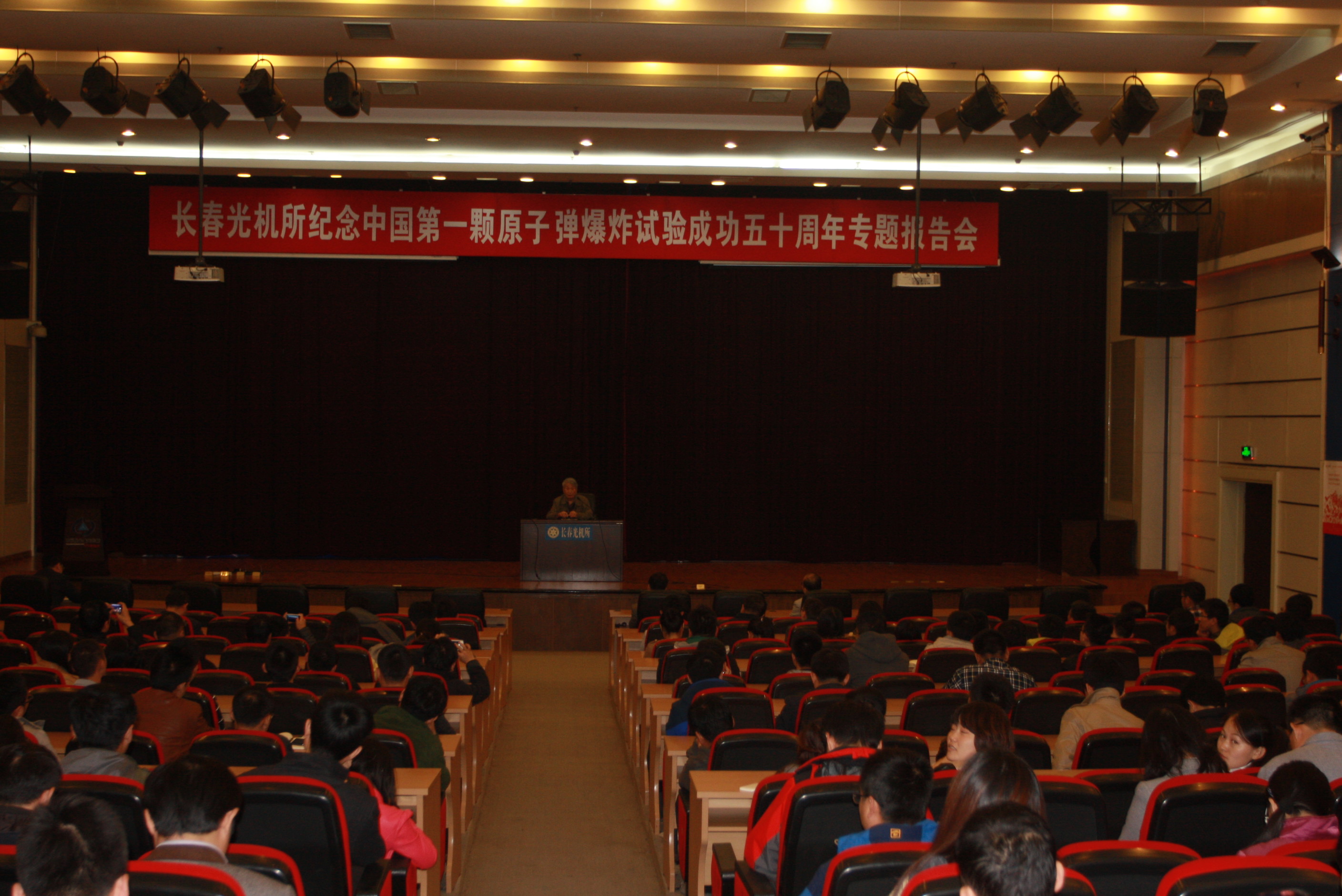 为纪念原子弹成功爆炸五十周年,增加所内职工、青年学生对原子弹研试历程、长春光机所参与原子弹试验经过的了解,大力弘扬及传承“热爱祖国、无私奉献、自力更生、艰苦奋斗、大力协同、勇于攀登”的两弹一星精神,10月16日,长春光机所举办纪念中国第一颗原子弹爆炸试验成功五十周年专题报告会,邀请了曾经参与原子弹爆炸试验任务的中国科学院陈星旦院士作报告。