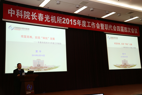 2015年3月10日上午,长春光机所2015年度工作会议暨职代会四届四次会议召开。我所职工代表和部分骨干职工300余人在主会场出席大会,其他职工在18个视频分会场参加大会。宋志义副所长主持会议。
