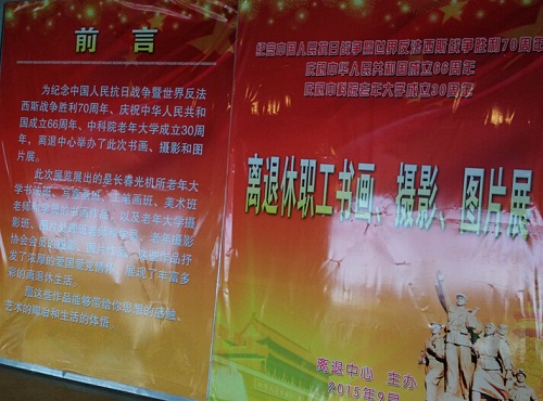 为纪念中国人民抗日战争暨世界反法西斯战争胜利70周年、庆祝中华人民共和国成立66周年、中科院老年大学成立30周年,9月1日,长春光机所离退中心在该所研发大厦一楼大厅举办了离退休职工书画、摄影和图片展。