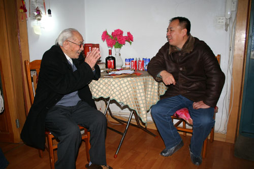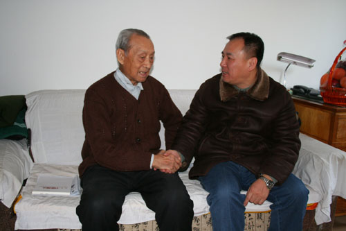 随后,贾平又来到抗战时期老干部王裕钊同志的家中。贾平亲切地靠近王裕钊的身边,对他的身体和生活状况进行了仔细的询问。看到92岁高龄的王裕钊同志依然身体健康,思维活跃,谈笑风生,而且尚能自己动手做饭,料理家务,贾平感到非常欣慰。