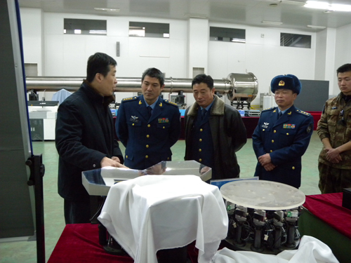 1月22日上午,沈阳军区空军航空兵训练基地副司令徐步华、副政委田阳来长春光机所参观交流。长春光机所副所长马明亚向客人介绍了本所的整体情况,并陪同参观了本所主要科研及产业化成果。双方还探讨了下一步就科技拥军、军民共建工作的合作意向。