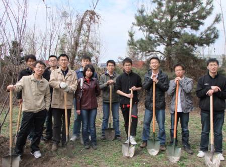 4月26日,在研究生部团总支的组织下,2011届博士毕业班以及各年级的入党积极分子、预备党员们踏着和煦的春风,在研究生部教学楼、食堂周围以及研发大厦东、西两侧,举行以“纪念建党九十周年团日活动”为主题的春季植树活动。