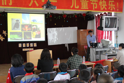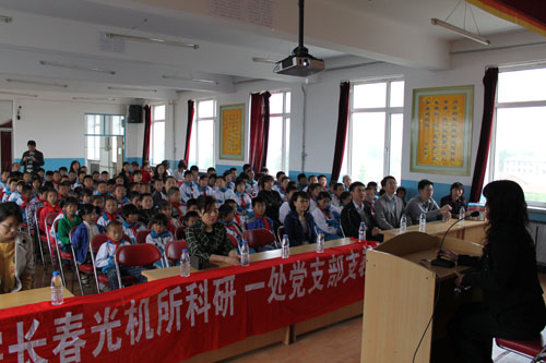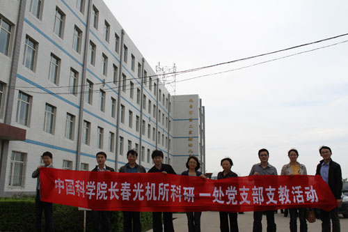 6月2日,科研一处党支部全体党员前往吉林省九台市九郊乡小学开展了一次科普支教活动。此次支教活动作为“纪念中国共产党建党90周年”主题党日活动的重要组成部分,科研一处精心策划,认真准备,在为小学生们带去了六一儿童节祝福的同时,还用科普的语言进行了精彩的光学知识讲座,知识讲授分以下几个专题进行:“光从哪里来”,“光有什么特点?”,“我们怎样通过光认识世界?”,“光是什么?”,“光在生活中的应用?”。活动激发了小学生们浓厚的学习热情,得到了九郊乡党委、学校领导、老师及同学们的一致好评。在讲座之后,支教团同孩子们合影留念。