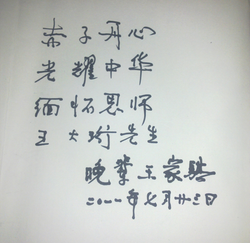 23日下午,长春光机所王家骐院士吊唁了王老,并题词:“赤子丹心,光耀中华,缅怀恩师王大珩先生”。