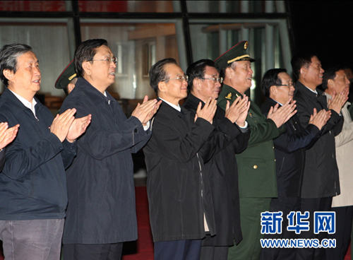 北京时间9月29日21时25分45秒,我国自主研制的天宫一号目标飞行器发射升空后准确进入预定轨道。胡锦涛、吴邦国、贾庆林、李长春、习近平、李克强、周永康等领导同志在北京航天飞行控制中心观看发射实况,对天宫一号目标飞行器发射成功表示热烈祝贺,向为此作出贡献的广大科技工作者、干部职工和解放军指战员表示亲切慰问。新华社记者 李学仁 摄