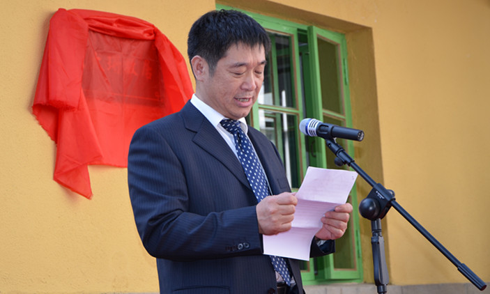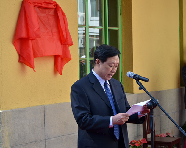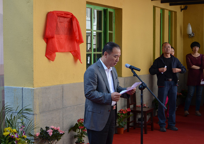 宣明所长与王老长子(王竞)共同为故居揭牌