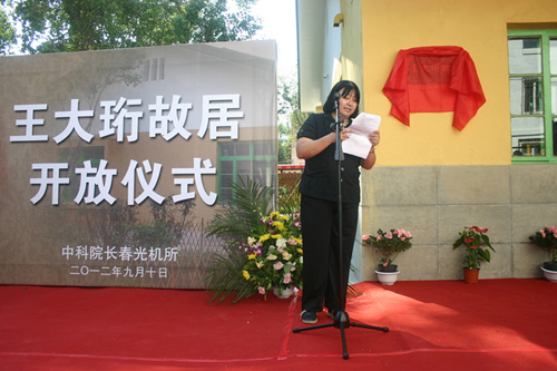 9月10日上午10时30分,王大珩故居开放仪式在工农广场王大珩小楼隆重举行。长春理工大学党委书记于佩学、长春理工大学原校长姜会林、长春光机所所领导宣明、贾平、申德振、马明亚、宋志义、金宏、杨怀江及来自长春光机所、长春理工大学的研究生代表共100余人参加了仪式。