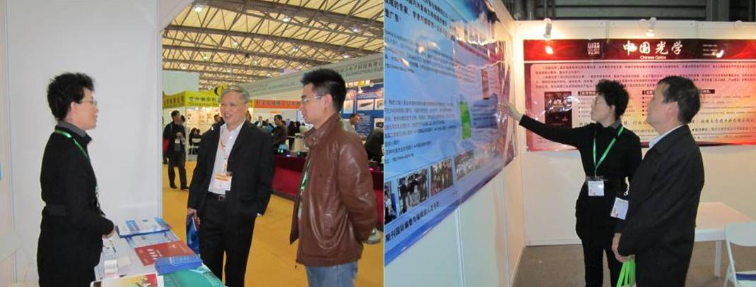 展会期间,《中国光学》得到了中国光学学会副秘书长李焱教授,广东省光学学会理事长、中国光学学会理事江绍基教授的高度关注,他们对目前处于初创期的《中国光学》所做的创新性工作和取得的成绩予以了肯定,并为期刊的发展提出了宝贵的意见,希望《中国光学》能够发挥自身优势,办出品牌和特色,利用外部资源促进学科交叉和融合,不负《中国光学》这一冠名。同时,来自美国、俄罗斯、韩国、新加坡等国外专家、学者及企业代表对长春光机所主办的5种学术期刊产生了浓厚的兴趣,通过与他们面对面交流,了解到国际光学领域科研及产业的最新技术及产品需求,不仅为期刊热点栏目的设定提供了参考,同时还可为国内科研人员提供相关信息。