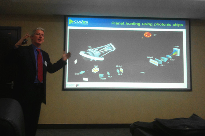 在所期间,Michael Withford听取了长春光机所所情介绍后,做了题为“Ultrafast laser written glass photonics: the challenges and opportunities”的学术报告,并向长春光机所的科研人员介绍了澳大利亚麦考瑞大学光电中心。他高度评价了长春光机所在中国光学以及世界光学方面做出的突出贡献。