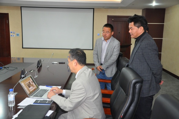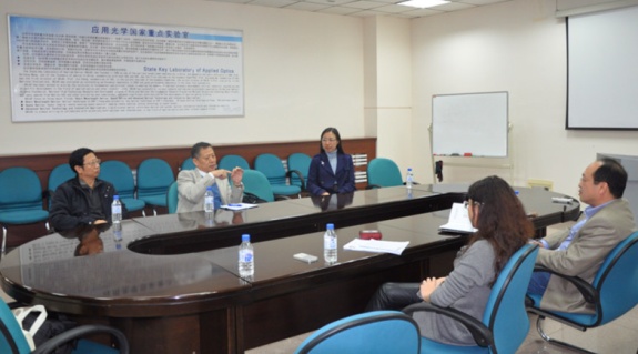 在长春光机所研发大厦会议室,李教授就科研成果产业化与长光科技总裁甘泽龙,国际合作处副处长张来明等进行座谈。