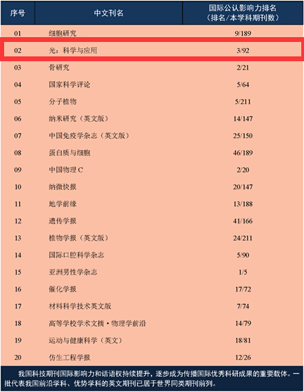 该展区共展出了20本英文科技期刊作为我国优秀科技期刊的代表,由中科院长春光机所主办的英文期刊《光:科学与应用》(Light: Science & Applications)入选并位居第二。这是创刊仅五年的Light: Science & Applications的办刊水平和期刊国际影响力的极大认可和高度赞誉,激励着Light办刊团队不忘初心,砥砺前行,为了领跑国际光学研究,搭建国际光学研究领域中国与世界高水平学术平台这个目标继续努力与奋斗,在实现中国优秀文化“走出去”的道路上取得更大的进步和成就。
