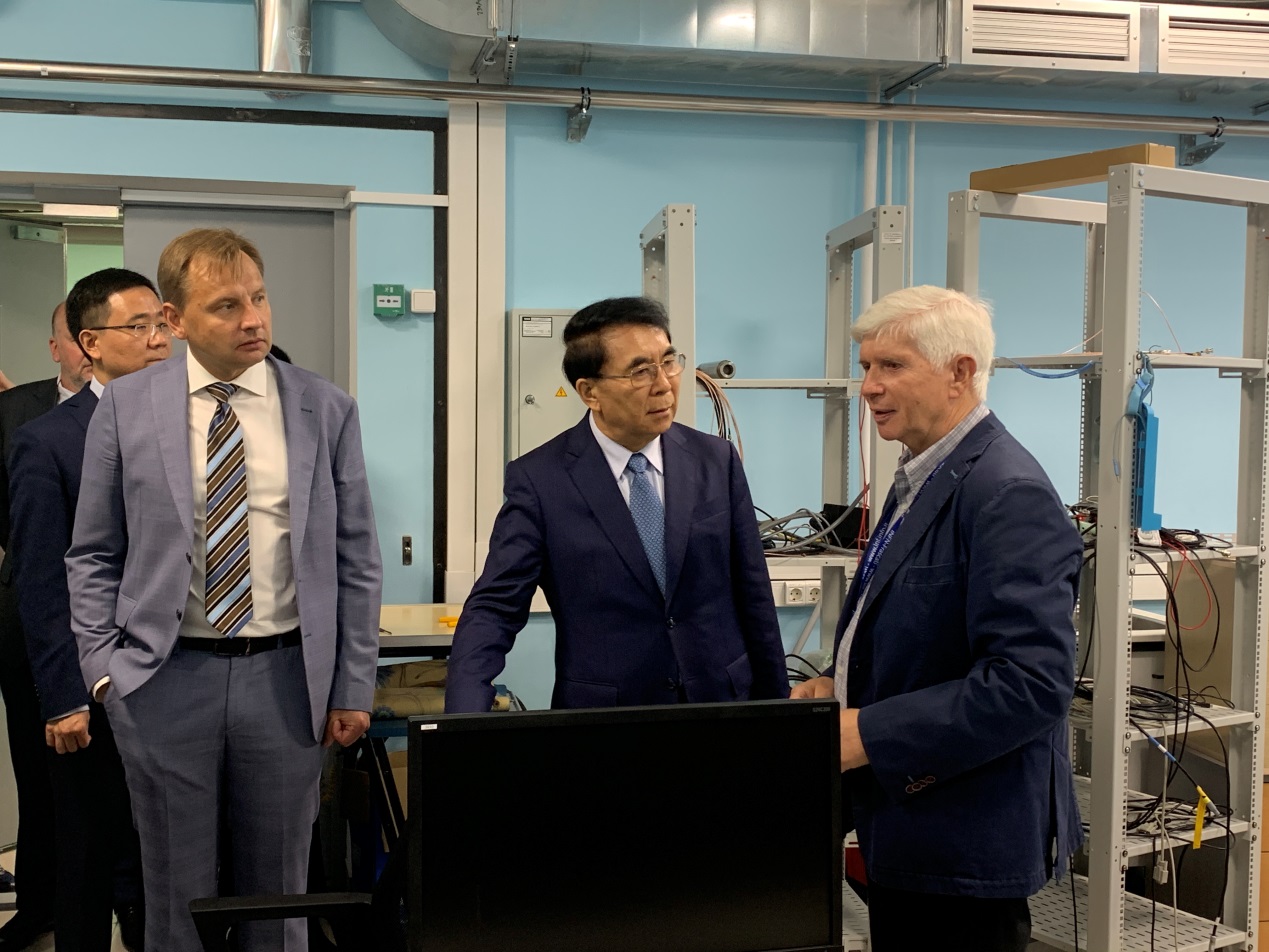 7月17日,长春光机所副总工程师陈波研究员、国际合作处处长张来明、于存三人陪同中国科学院院长白春礼一行访问列别捷夫物理所,与俄科院列别捷夫物理所所长卡拉切夫斯基亲切会见。