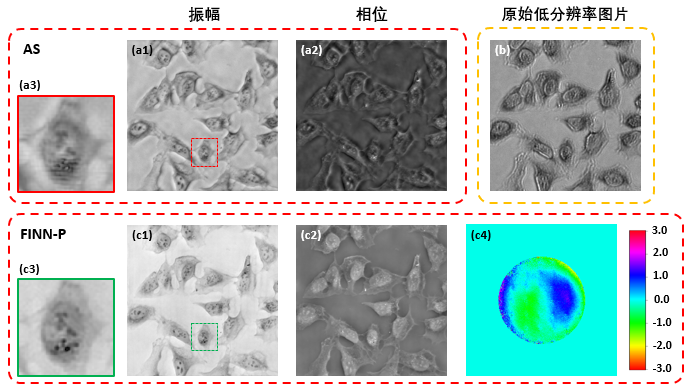 为了解决该问题,长春光机所应用光学国家重点实验室液晶光学课题组提出了基于神经网络结构的恢复算法(FINN-P),并将光瞳函数的恢复过程嵌入其中。该算法可以正确的恢复出系统的光瞳函数并以此对高分辨率图进行重建,提升了算法的鲁棒性,降低了光源的相干性以及系统像差对重建结果带来的影响,并成功地解决了传统算法在视场边缘处会出现收敛错误的问题。对分辨率板和实际生物样本图片使用该算法处理后,图像质量有了明显提高。课题组孙铭璐、李大禹、穆全全等将相关结果以“Neural network model combined with pupil recovery for Fourier ptychographic microscopy”为题发表在Opt. Express, 2019年, 27卷, 17期, 24161-24174(DOI: https://doi.org/10.1364/OE.27.024161)上。