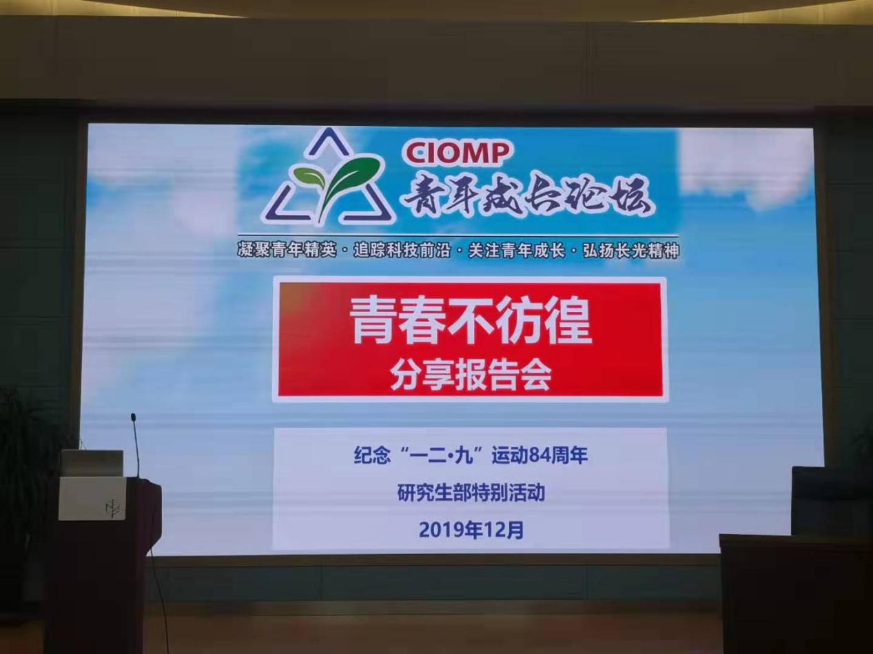 12月4日,为纪念“一二九”运动84周年,所党委办公室、研究生部以“青春不彷徨”为主题,为2019级研究生举行了一场专题分享报告会。报告会邀请青年科研骨干与同学们分享在所学习工作的经历和体会,介绍本所所史所情和研究领域方向,回顾了老一辈长光人和新时代长光科技工作者的奋斗故事,感受长光精神。报告会受到了同学们的欢迎和好评。