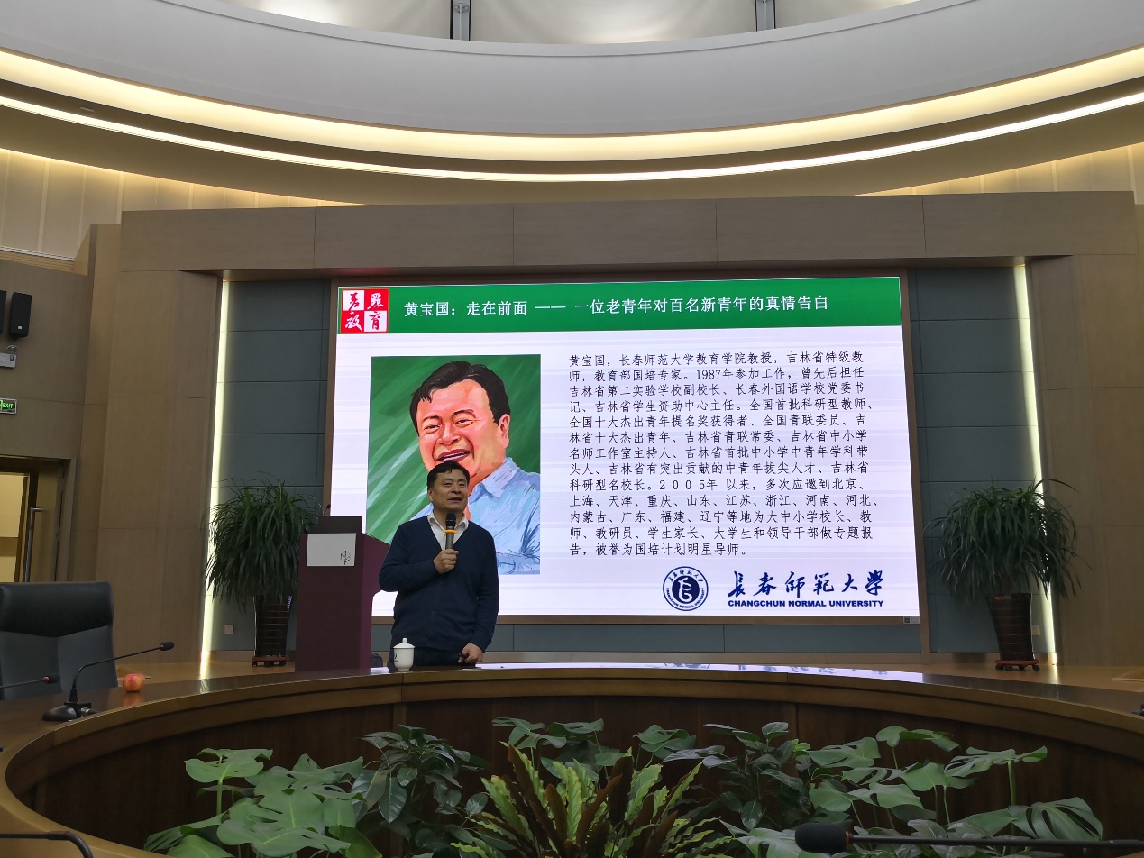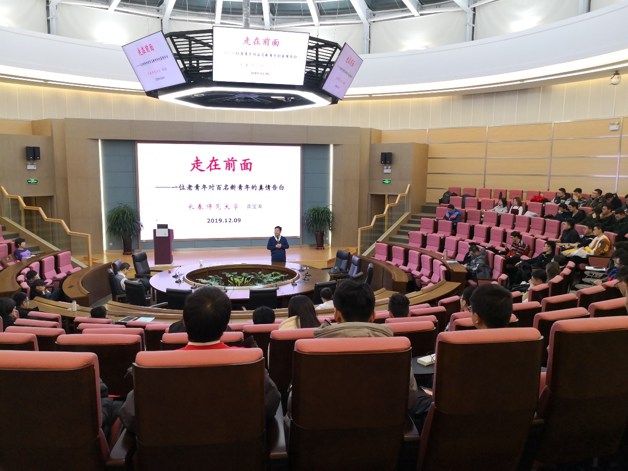 为了提高同学们的人文素养,丰富课余文化生活,12月9日晚,长春光机所研究生部特邀长春师范大学教育学院黄宝国教授为同学们作了以《走在前面—一位老青年对百名新青年的真情告白》为题的讲座。讲座由研究生部副主任李树军主持,研究生部主任方秀军以及所内2019级全体研究生同学参加了此次人文讲座。