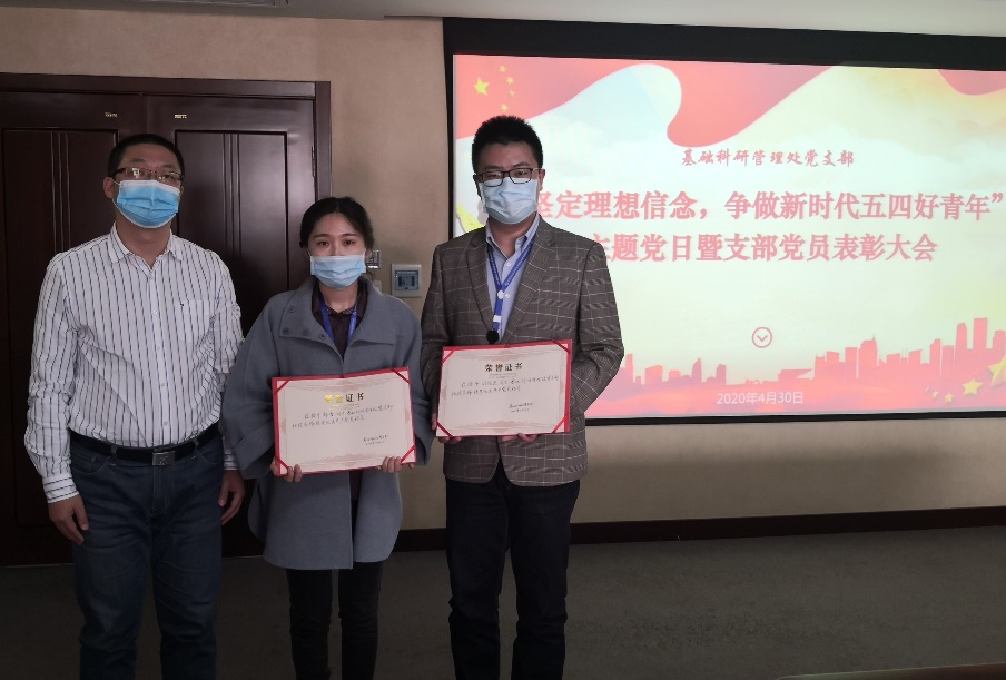 4月30日,基础科研管理处党支部开展“坚定理想信念,争做新时代五四好青年”主题党日活动暨支部党员表彰大会。本次活动结合本支部韩雪、闫俊良两位同志在“省直机关党员先锋队”中参加新冠疫情防控工作的经历和体会,集中学习习近平总书记关于新冠肺炎疫情防控工作的最新重要指示以及习近平新时代中国特色社会主义思想中对青年的要求和寄托,共同分享学习实践经验、畅谈心得体会、坚定理想信念,明确了做新时代好青年的奋斗目标。活动由支部书记许亮主持。