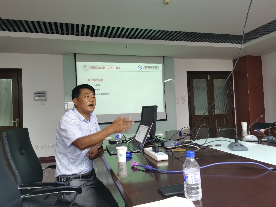 随后,刘文武作了《审计监督与风险防控》专题报告,报告内容分为内部审计介绍、科研经济业务“三性”审计、审计监督建议与廉洁从业提醒三个部分。刘文武指出,在“全面从严治党”、深化“放管服”改革的形势下,当前内部审计的重点是经费管理与工作绩效目标;他强调了经费使用要遵守真实性、合法性、合规性,同时介绍了材料采购、外协加工、会议、基本建设专项审计相关要求。结合审计监督与风险防控,刘文武通报了有关违纪警示案例,为广大党员敲响警钟、强化廉洁从业的意识和遵纪守法观念,并强调了构建流程规范、权责清晰、预警及时、防控有力的廉洁从业风险防控机制的重要性和必要性。