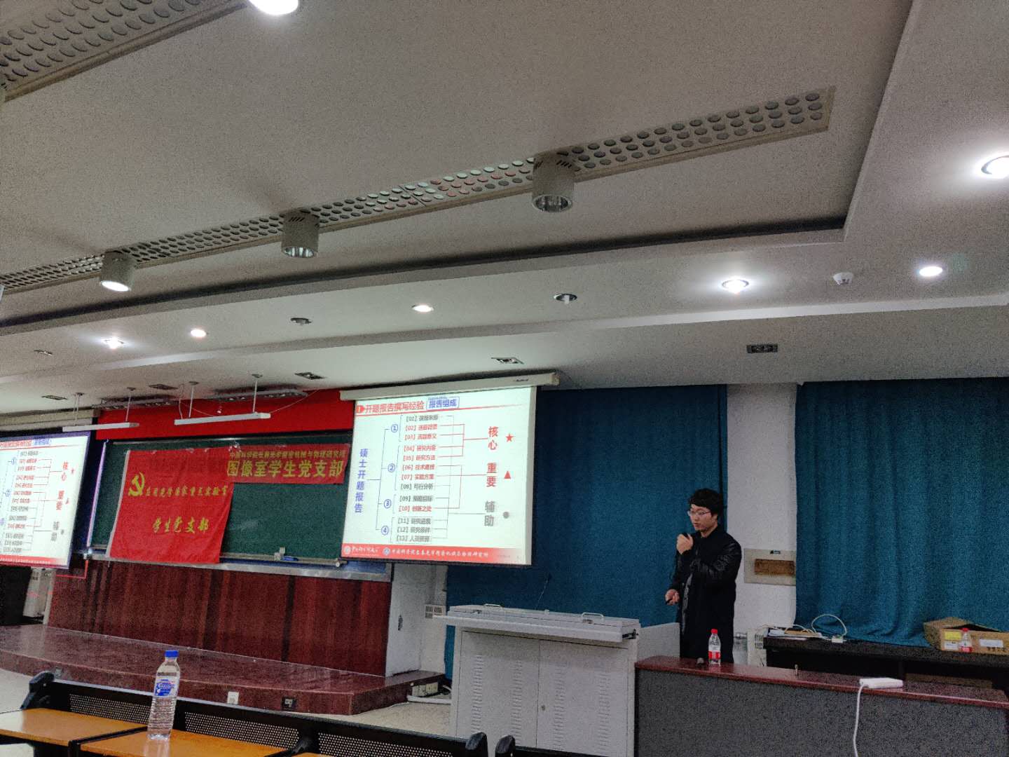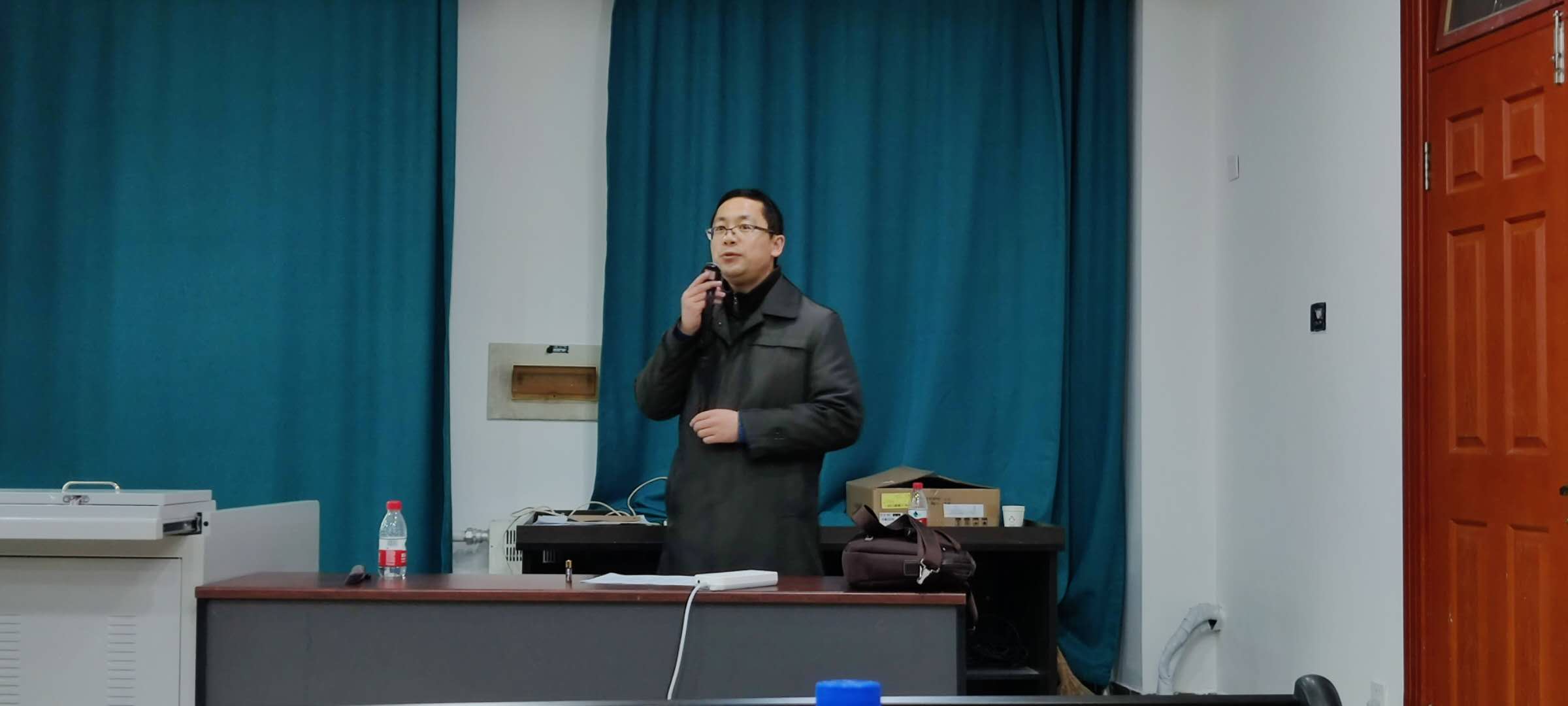 李树军主持开场并向同学们说明了开题的一些注意事项和答辩评分标准,鼓励同学们认真应对。
