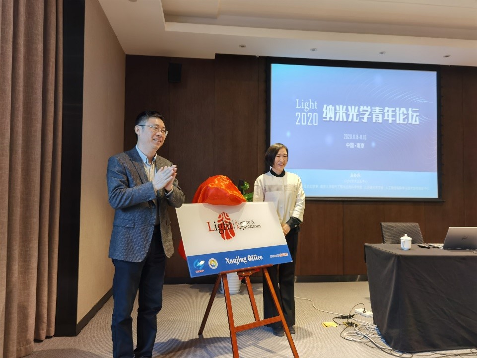 11月8-9日,Light南京办公室揭牌仪式暨Light 2020纳米光学青年科学家论坛在南京大学成功举办!此次论坛由中科院长春光机所Light学术出版中心主办,固体微结构物理国家重点实验室、南京大学现代工程与应用科学学院、江苏省光学学会、人工微结构科学与技术协同创新中心共同承办。Light学术出版中心主任白雨虹、总编李耀彪代表主办方出席了会议。
