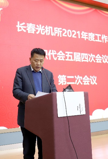 1月20日下午3时,大会第二次全体会议召开,所党委副书记、纪委书记金宏主持会议。所长贾平首先代表所务会对分组讨论提出的意见、建议进行了回复和现场部署,并对此次工作会议进行了总结;随后,职代会常设主席团主席刘文武同志组织与会职工代表审议并通过了《长春光机所职工代表大会五届四次会议关于〈长春光机所考勤管理办法(征求意见稿)〉的决议》和《长春光机所职工代表大会五届四次会议决议》。大会《决议》指出:大会同意所领导班子对2020年各项工作的总结和评价及对2021年工作的部署;所领导班子注重民主管理,关心职工生活,重视职工权益保障。大会号召全所同志在习近平新时代中国特色社会主义思想的指引下,全面贯彻党的十九大和十九届二中、三中、四中、五中全会及中央经济工作会议精神,全面落实党中央、国务院及院党组重大决策部署,以“四个率先”和“两加快一努力”作为工作的根本遵循,“咬定青山不放松,脚踏实地加油干”,擘画宏图、昂首登程、乘势而上、再攀高峰,努力谱好“十四五”开局新篇,全面开启新的伟大征程,肩负起国家战略科技力量的历史使命,努力在科技自立自强中发挥骨干引领作用,以优异成绩向建党一百周年献礼!
