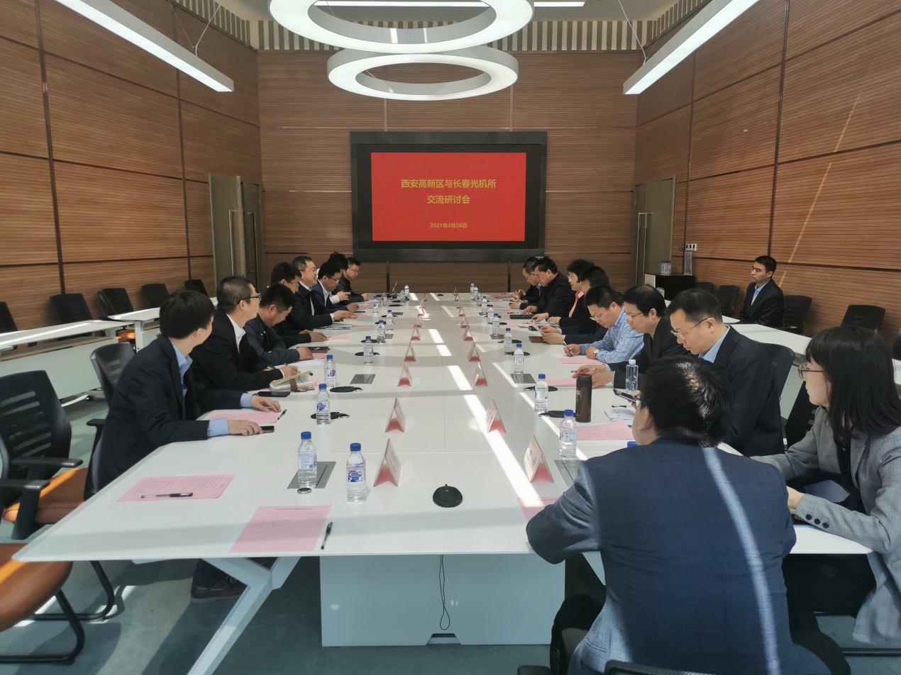 4月26日,西安市副市长、高新区党工委书记马鲜萍一行12人到长春光机所考察调研。此次来访旨在发展光子科学技术,促进光子产业,推动“光子”在经济、安全和前沿科学研究等各个领域的应用,促进双方共赢发展。西安高新区党工委副书记、管委会主任齐海兵,西安高科集团有限公司党委书记、董事长贾长舜,中国科学院西安光学精密机械研究所光电处处长杨洪涛等陪同调研。