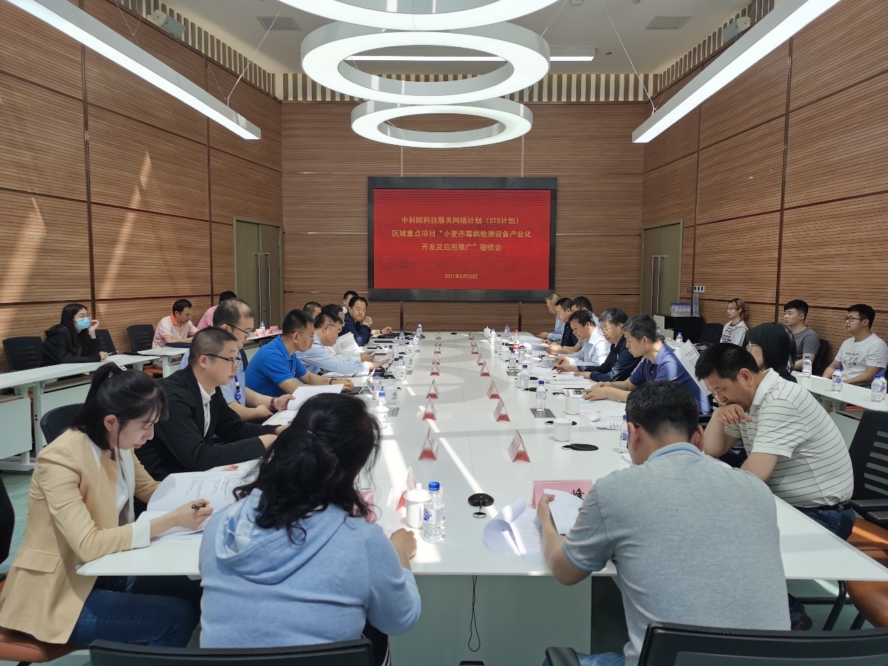 5月20日,中科院STS计划区域重点项目“小麦赤霉病检测设备产业化开发及应用推广”验收会在长春召开。中科院长春分院院长甘建国、中科院长春光机所副所长李耀彬、所务委员孙守红、项目验收专家以及分院科技合作处、长春光机所成果转化处、财务管理处等相关人员参加了验收会,会议由甘建国主持。