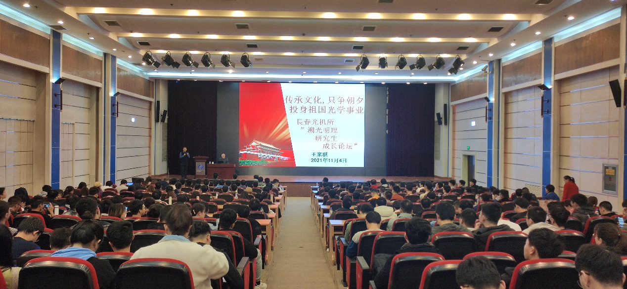 2021年11月4日上午,长春光机所研究生部主办的“溯光明理”研究生成长论坛(第一期)在研发大厦东侧报告厅成功举办。本次论坛邀请到中国科学院院士、光学仪器专家王家骐为我所研究生作题为《传承文化,只争朝夕,投身祖国光学事业》的主题报告。2021级全体研究生和部分高年级研究生共计300余人参加了本次论坛,论坛由研究生部主任方秀军主持。
