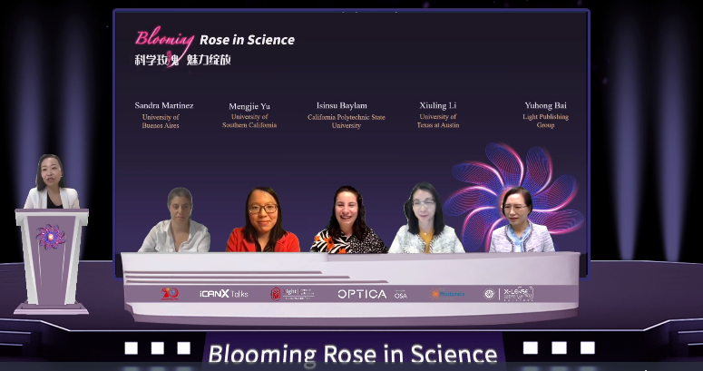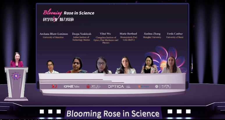 “科学玫瑰”活动是2015年由长春光机所为响应联合国“国际光年”而发起的面向全球女性科研工作者的重要学术交流活动,2022年是“科学玫瑰”活动的第五届,邀请了12位来自世界六大洲的优秀科研界女性参与。她们分别是布宜诺斯艾利斯大学Sandra Martinez教授、南加州大学Mengjie Yu助理教授、加利福尼亚理工州立大学Isinsu Baylam讲师、得克萨斯大学奥斯汀分校Xiuling Li教授、麦考瑞大学Judith Dawes教授、Light学术出版中心Yuhong Bai执行主编、毛里求斯大学Archana Bhaw-Luximon教授、印度理工学院马德拉斯分校Deepa Venkitesh教授、长春光机所Yihui Wu教授、Bioenzymatic Fuel CellsMarie Berthuel品牌传播和产品经理、上海大学Jianhua Zhang教授、巴塞尔大学Ferda Canbaz博士后。