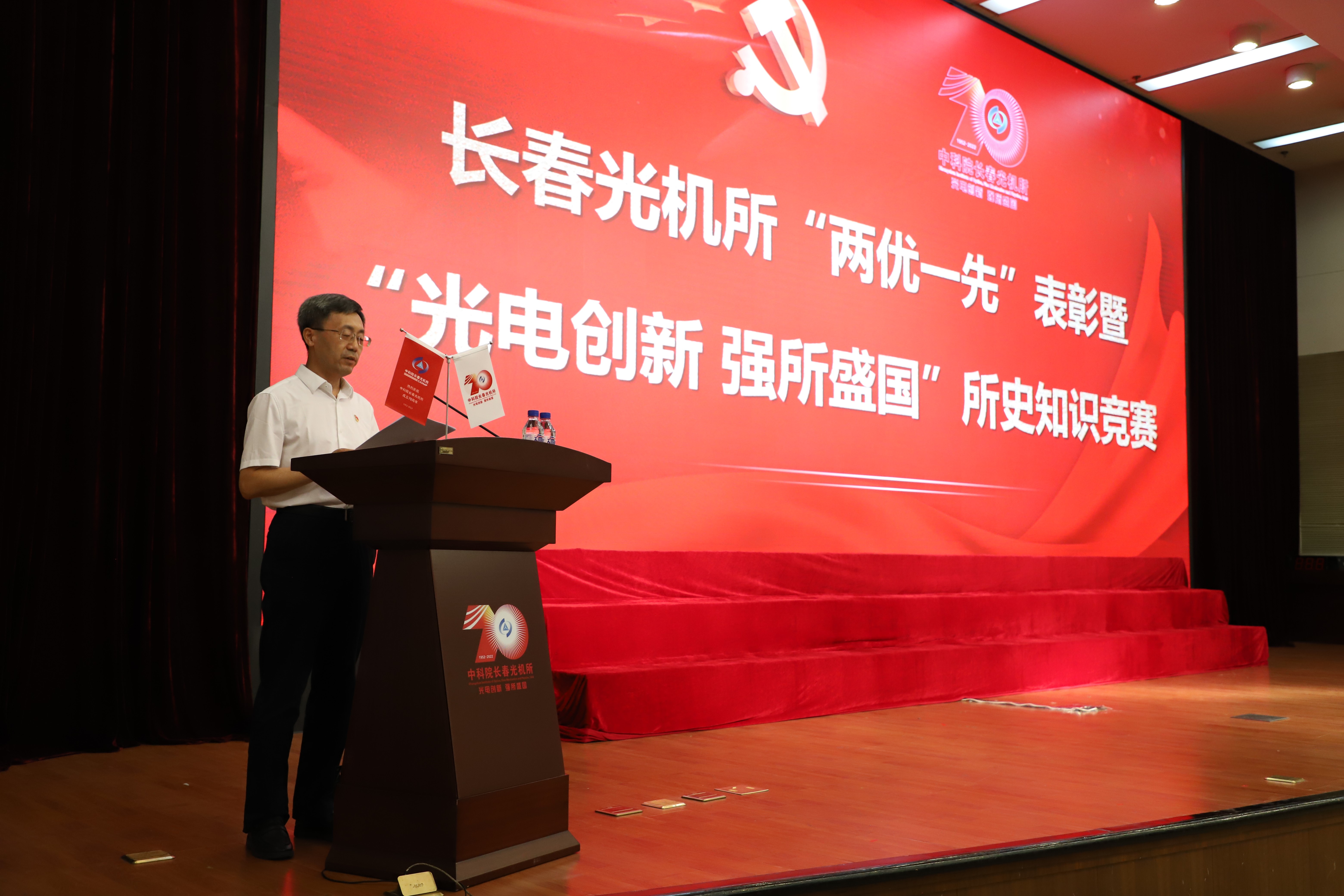 7月1日下午,长春光机所举行喜迎二十大奋进新征程“两优一先”表彰暨“光电创新 强所盛国”所史知识竞赛。会议设立主会场和视频分会场,分会场通过内网现场直播。在主会场参加会议的有所党委委员,纪委委员,所务会成员,院士,“两优一先”受表彰人员或党组织代表,党总支/党支部书记,新入党党员共近两百人,所属各党支部在部门分会场观看网络直播。会议由长春光机所党委副书记、纪委书记孙焕主持。