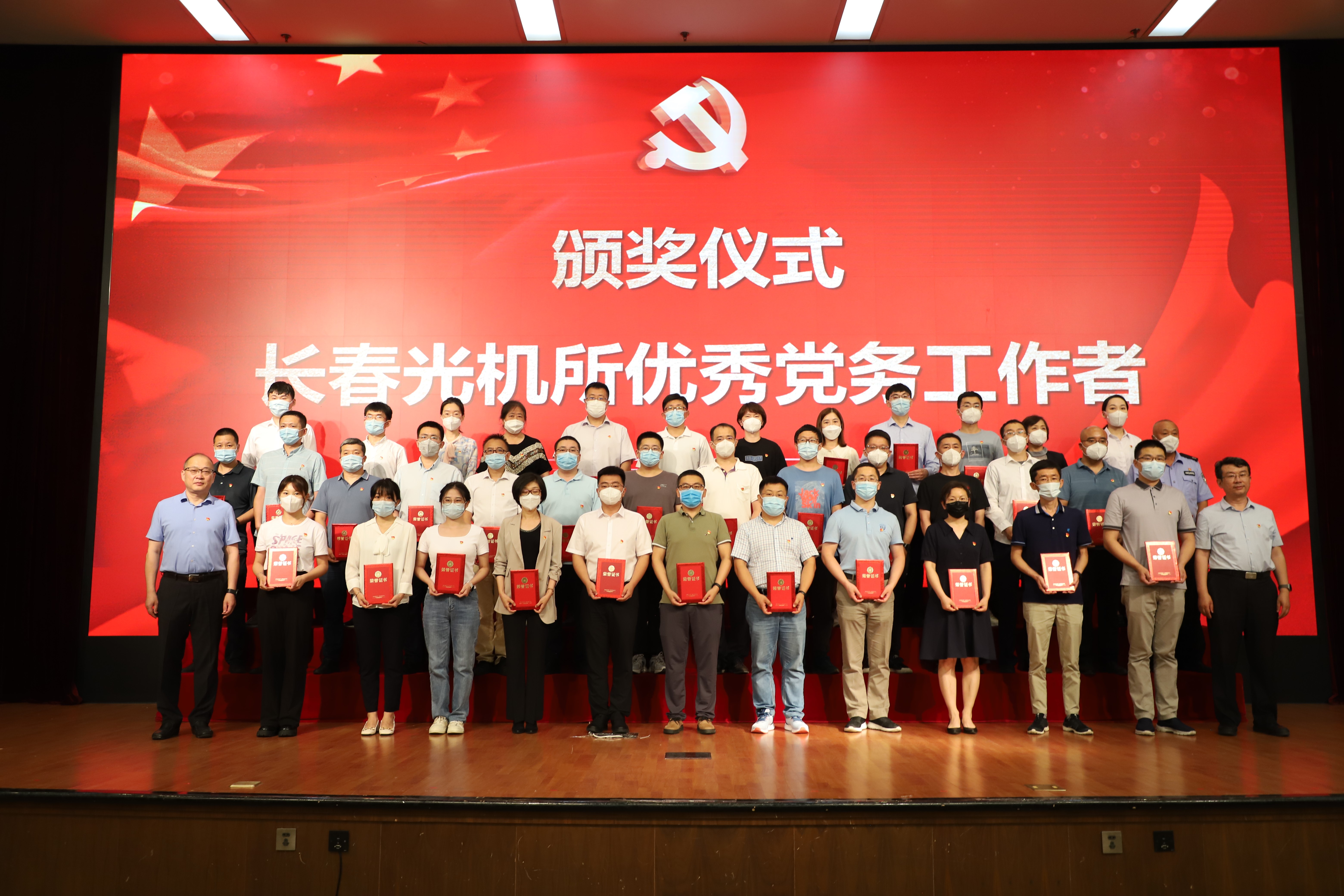 大会在庄严的国歌声中拉开序幕,党委书记、副所长金宏宣读《中共中国科学院长春光机所委员会关于表彰长春光机所2022年度“两优一先”的决定》,授予于洋等70人“长春光机所优秀共产党员”荣誉称号,授予于伟利等40人“长春光机所优秀党务工作者”荣誉称号,授予应光室党支部等30个基层党组织“长春光机所先进基层党组织”荣誉称号,并举行了隆重的颁奖仪式。受表彰代表石宝松、陈星、江帆现场分享了感言,要牢记总书记的教诲,在今后的工作中不忘初心,继续学习和发扬科学家精神,勇攀高峰、敢为人先,潜心研究、团结协作,担好“国家责”,以优异成绩向党的二十大献礼。
