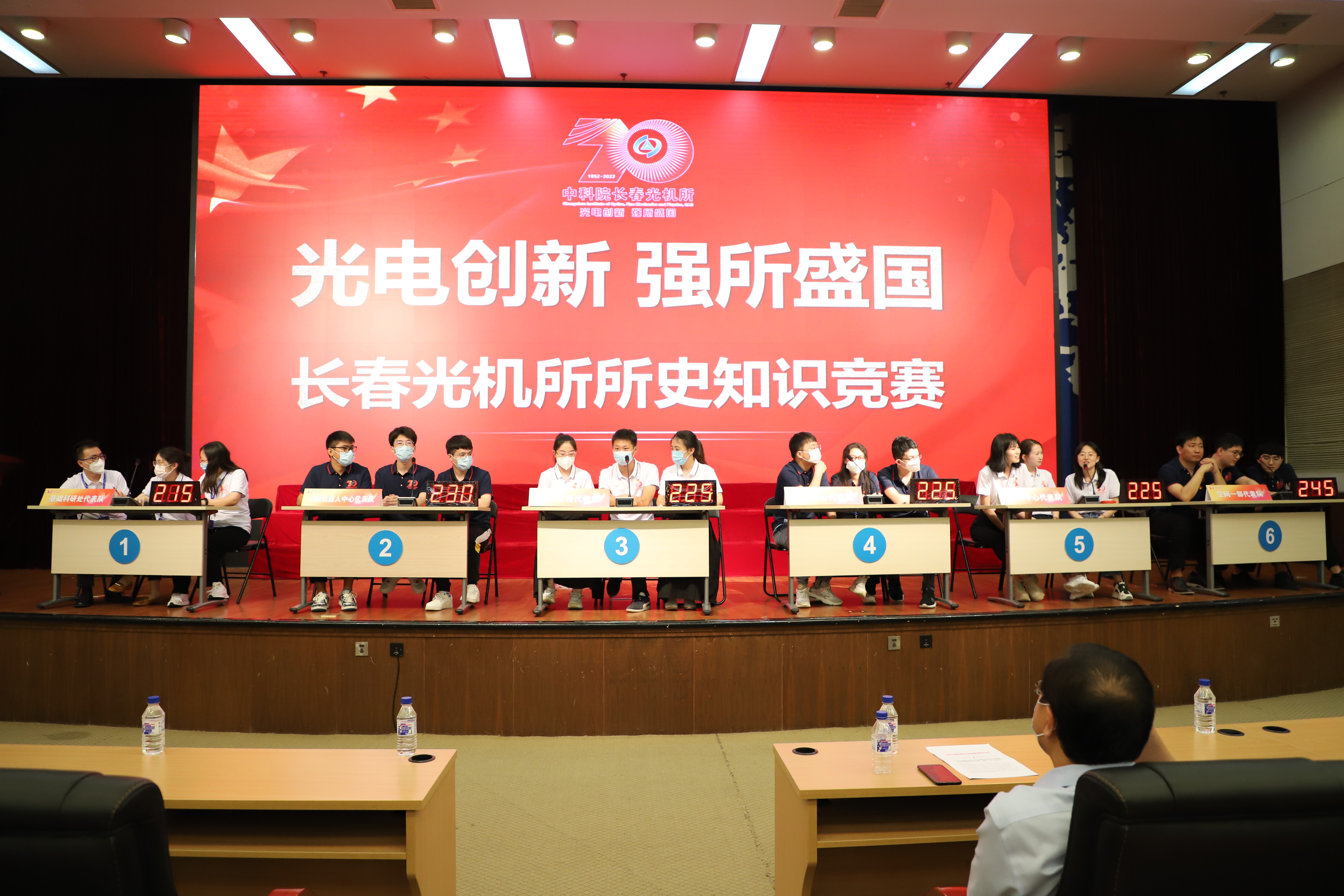 最后,进行“光电创新 强所盛国”所史知识竞赛决赛。本次所史知识竞赛是为了迎接党的二十大胜利召开,庆祝建所70周年,引导职工进一步了解长春光机所的历史、现状与未来,激发广大职工的主人翁意识和爱所热情,使全所职工能够自觉理解、支持、参与本所的发展。共有来自科研、管理、支撑及产业系统的23支代表队参赛,6支代表队进入到决赛环节。经过现场激烈角逐,空间一部代表队获得竞赛一等奖,空间机器人中心代表队和奥普公司代表队获得二等奖,质检中心代表队、light中心代表队和基础科研处代表队获得三等奖。