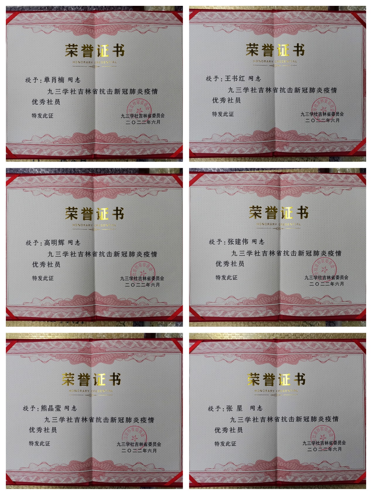 九三学社吉林省抗击新冠肺炎疫情优秀社员